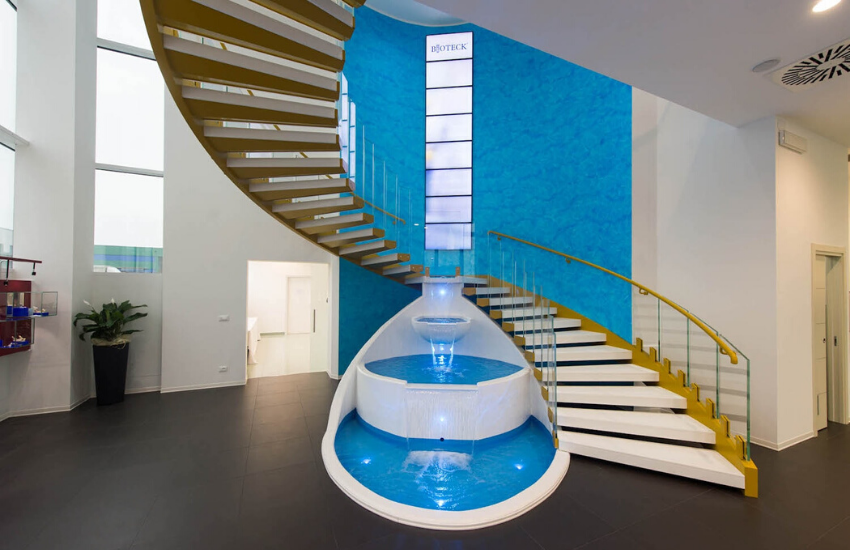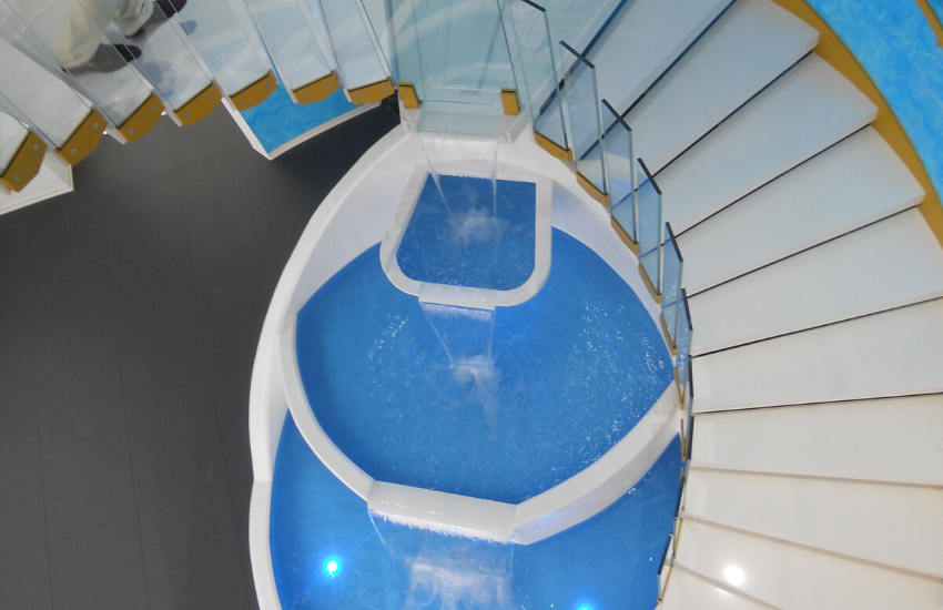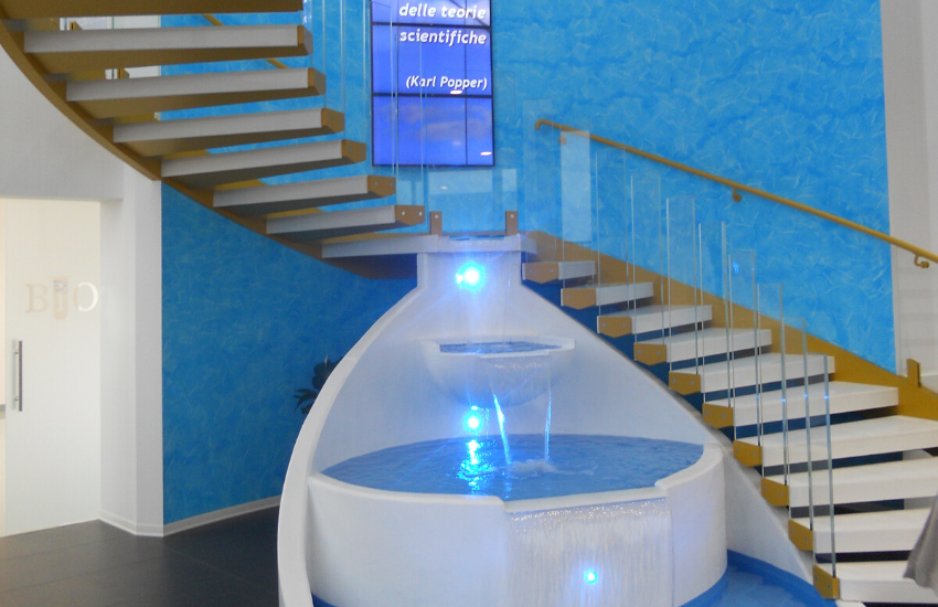 È stato inoltre predisposto un passaggio d’acqua sotto il pianerottolo centrale, che alimenta la fontana sottostante.