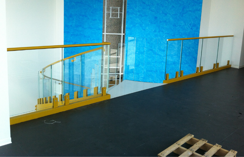 I parapetti, invece, sono stati eseguiti con delle lastre anticaduta in vetro.